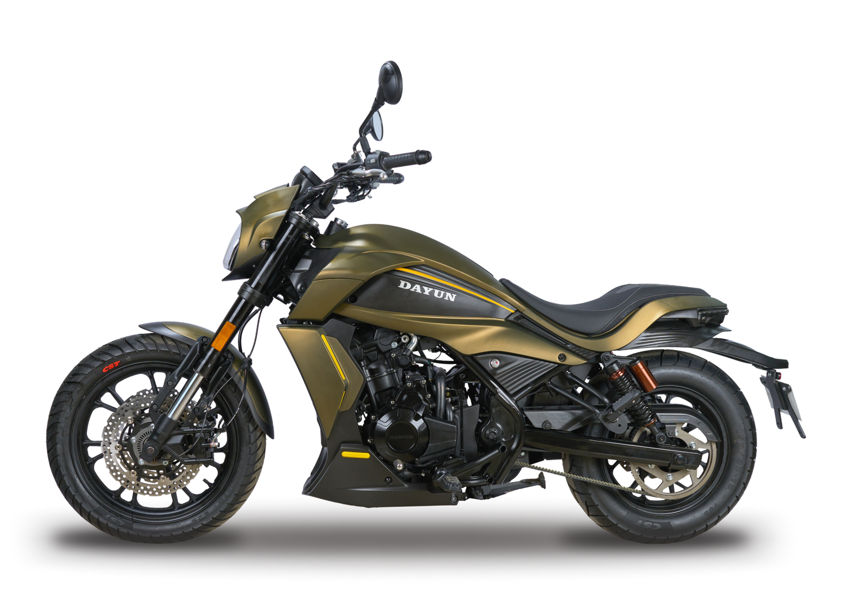 DAYUN DY500-6F оснащён продуманной ходовой частью для максимального комфорта. Передняя телескопическая вилка с гидравлическими амортизаторами эффективно сглаживает неровности, а задняя маятниковая подвеска с регулируемым гидравлическим амортизатором позволяет адаптировать мотоцикл под стиль езды. Колёсная база 1540 мм и высота по седлу 800 мм обеспечивают устойчивость и удобную посадку. Шины размером 120/80R18 спереди и 150/80R15 сзади гарантируют надёжное сцепление и уверенность на дороге.